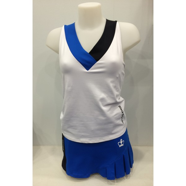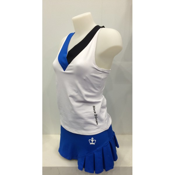 Camiseta de estupendo diseño, una camiseta en dos piezas, sujetador deportivo y camiseta sin mangas, una combinación de gran calidad combinala con la falda Black Crown Lyon Blanco Royal. Prenda transpirarble y comoda, lleva incorporado mallas cortas bajo la falda.Disfruta de la calidad, disfruta de tu deporte favorito!